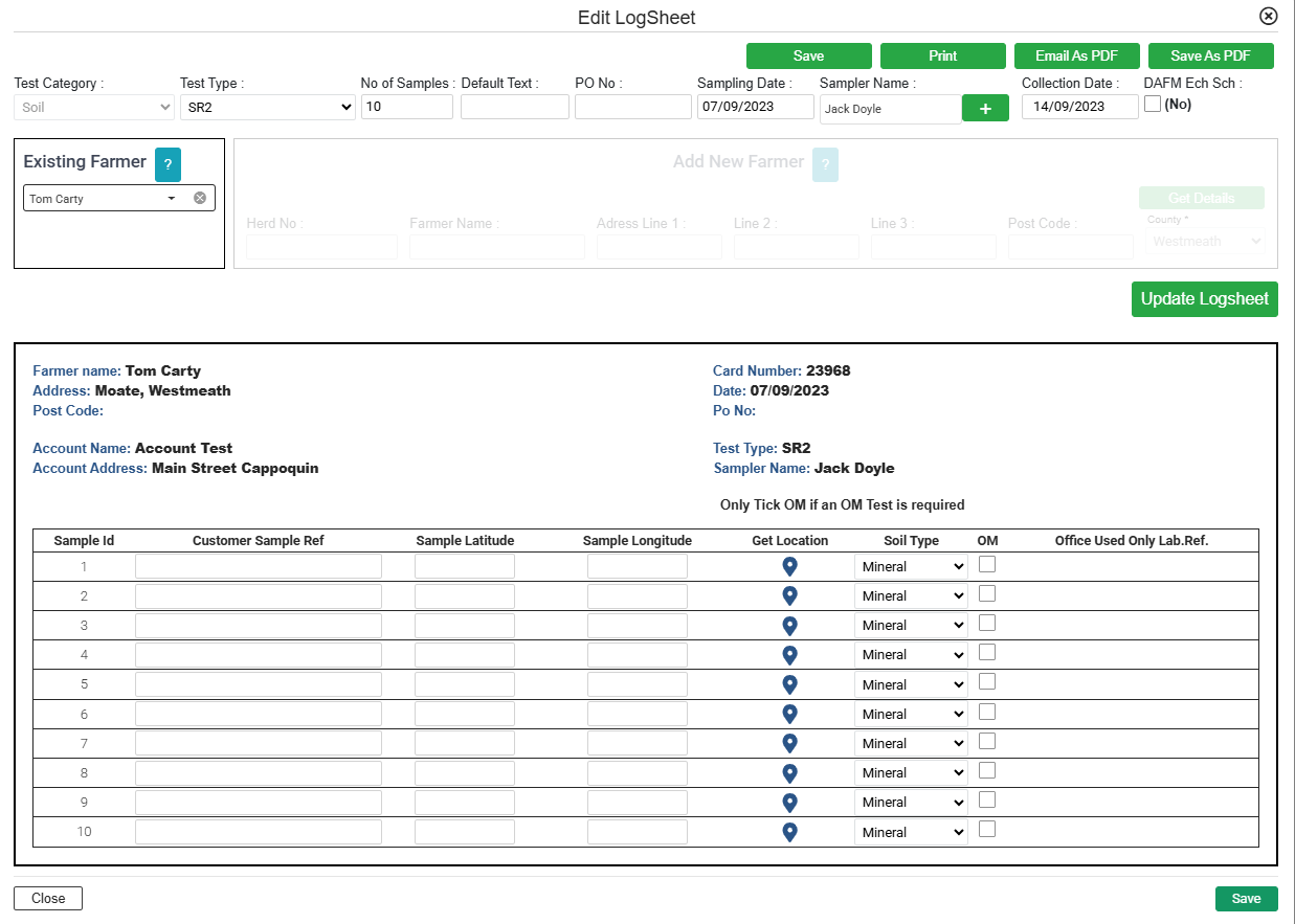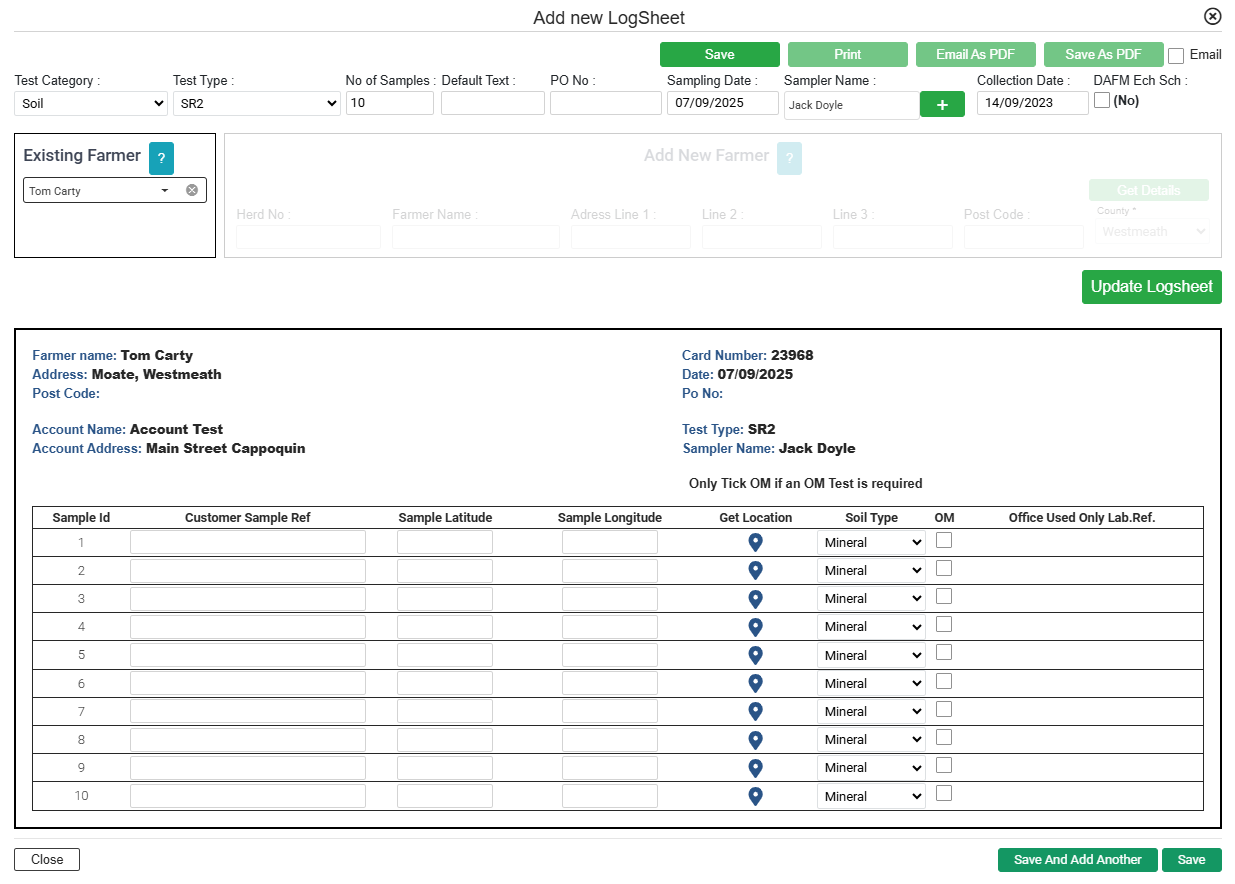 Get Details will check if FBA already has a record for this farmer but either way you can show the logsheet and save it.