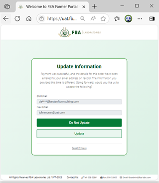 There is no login required to this application. The farmer can be either an Existing FBA farmer or a New farmer. It validates the farmer details, to ensure the test order is associated with the correct farmer.