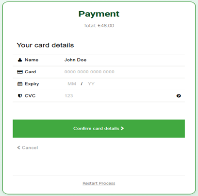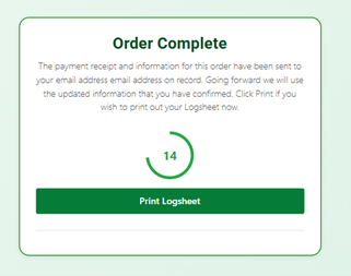 Please note if the payment step is not completed successfully, we will NOT store the logsheet. You will need to repeat all the steps, so please be sure you have all the correct details and access for 3D confirmation before this step.