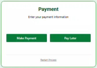When you have finished this step, you are then brought to the Payment Option. This follows the standard online steps to complete your payment. Pay Later allows you to submit the logsheet and then pay later by cheque or online on our website.