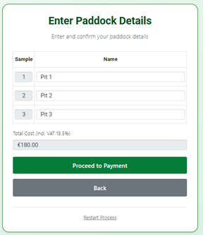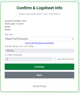 You will receive an email with the logsheet and a receipt for confirmation of the payment. You can send in your samples at any time once this process is completed. For Teagasc applications, if they are not confirmed then they will not be tested by FBA.