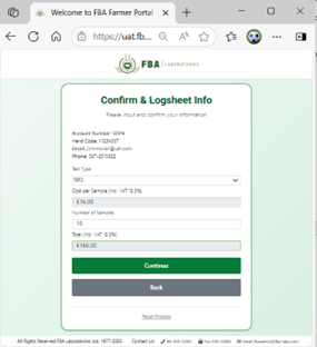 FBA are launching a specific Farmer/Advisor web application, to allow for the management of all FBA tests for prebooking and logsheet production. It takes the user through the steps to complete the process of auto logging their samples, creating their logsheet and completing an online payment. This application is specifically aimed to support farmers and advisors where the requirement is for mostly one-off annual farm test.